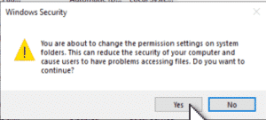You will get another popup asking if you really want to change a system directory. Click Yes.