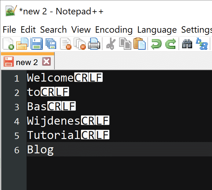 We will now literally see the Enters in the text file. See the screenshot below the CRLF are Enters.