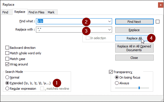 And type in Replace with : whatever you want to replace the Enter with. I mostly replace it with “,”. More about that in paragraph So, when do you need to remove multiple enters from a file or row of texts?