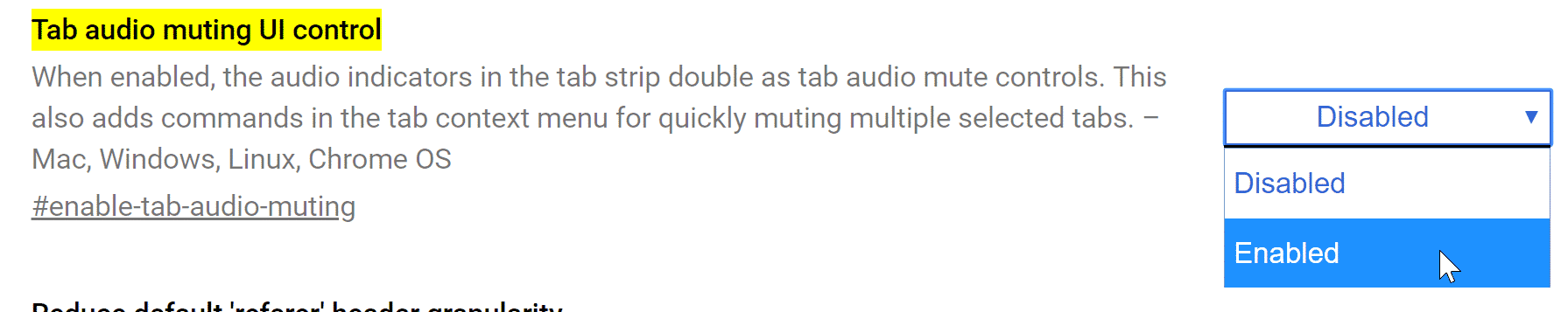 If you use the link you go directly to the option Tab Audio Muting UI Control. If you set it to enabled, you will be able to mutate tabs in Chrome.