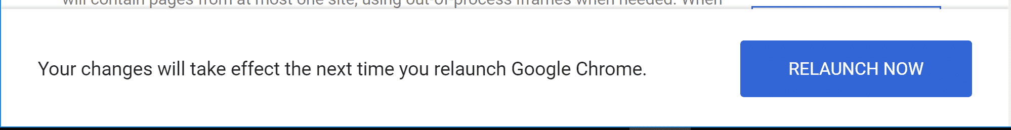 “Your changes will take effect the next time you relaunch Google Chrome. RELAUNCH NOW”